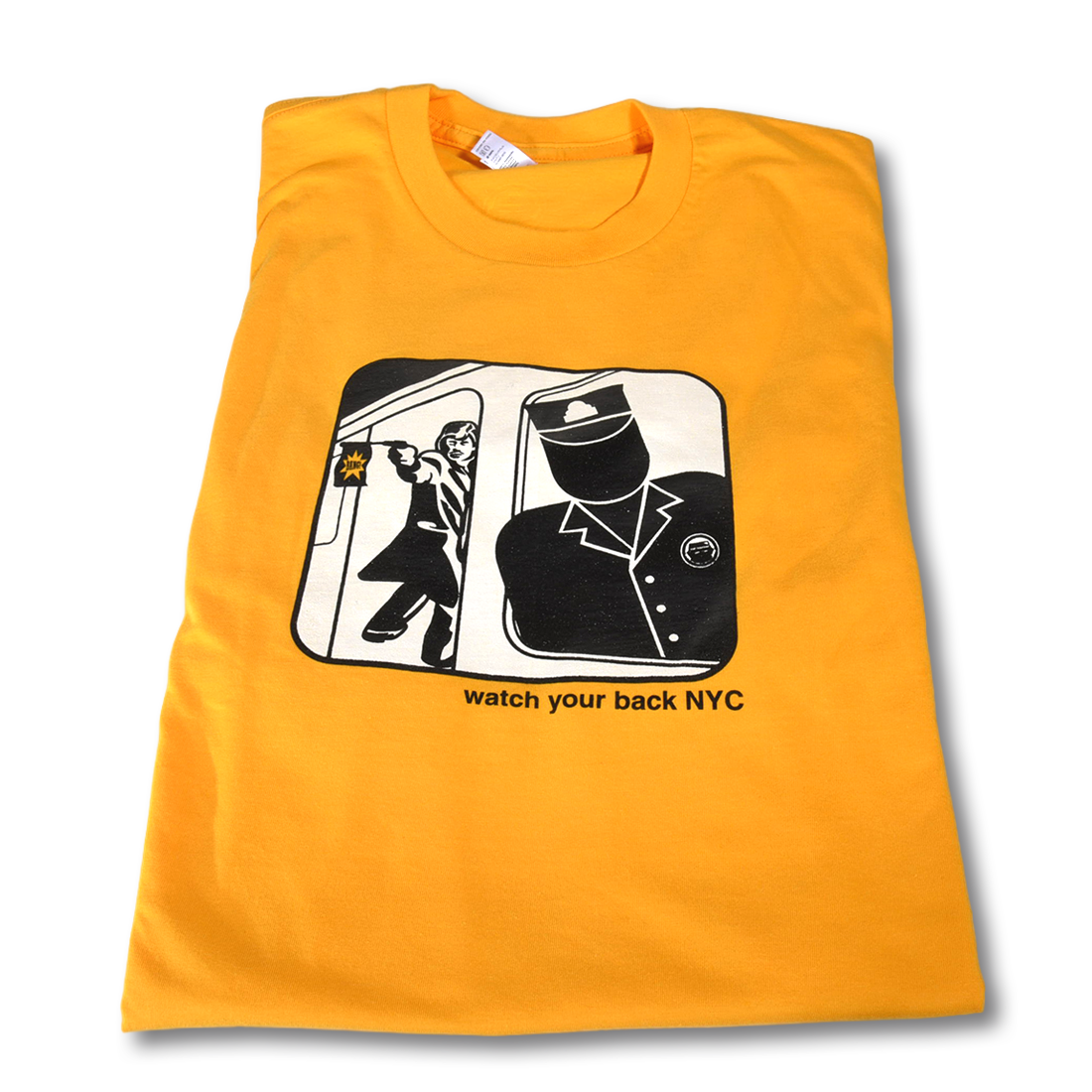 The New York City subway system can be the bane of one's existence. It's filthy, it's crowded... occasionally a mariachi band will miraculously appear when you are brutally hungover or a crafty rat will drag an entire slice of pizza around and go viral. These things happen... you deal with it. The image depicted on this shirt is pulled from that very world: the often-overlooked, but no-less significant "Late Night Stops Made Here" sign on most New York City subway platforms.